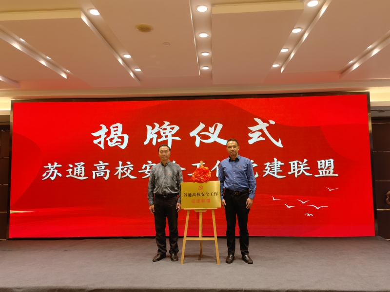 会议期间,为加强苏通片区高校安全工作的协同联动,打造党建与业务融合共建的平台,在与会人员共同见证下,严明和南通大学保卫处副处长徐友飞共同为“苏通高校安全工作党建联盟”揭牌。