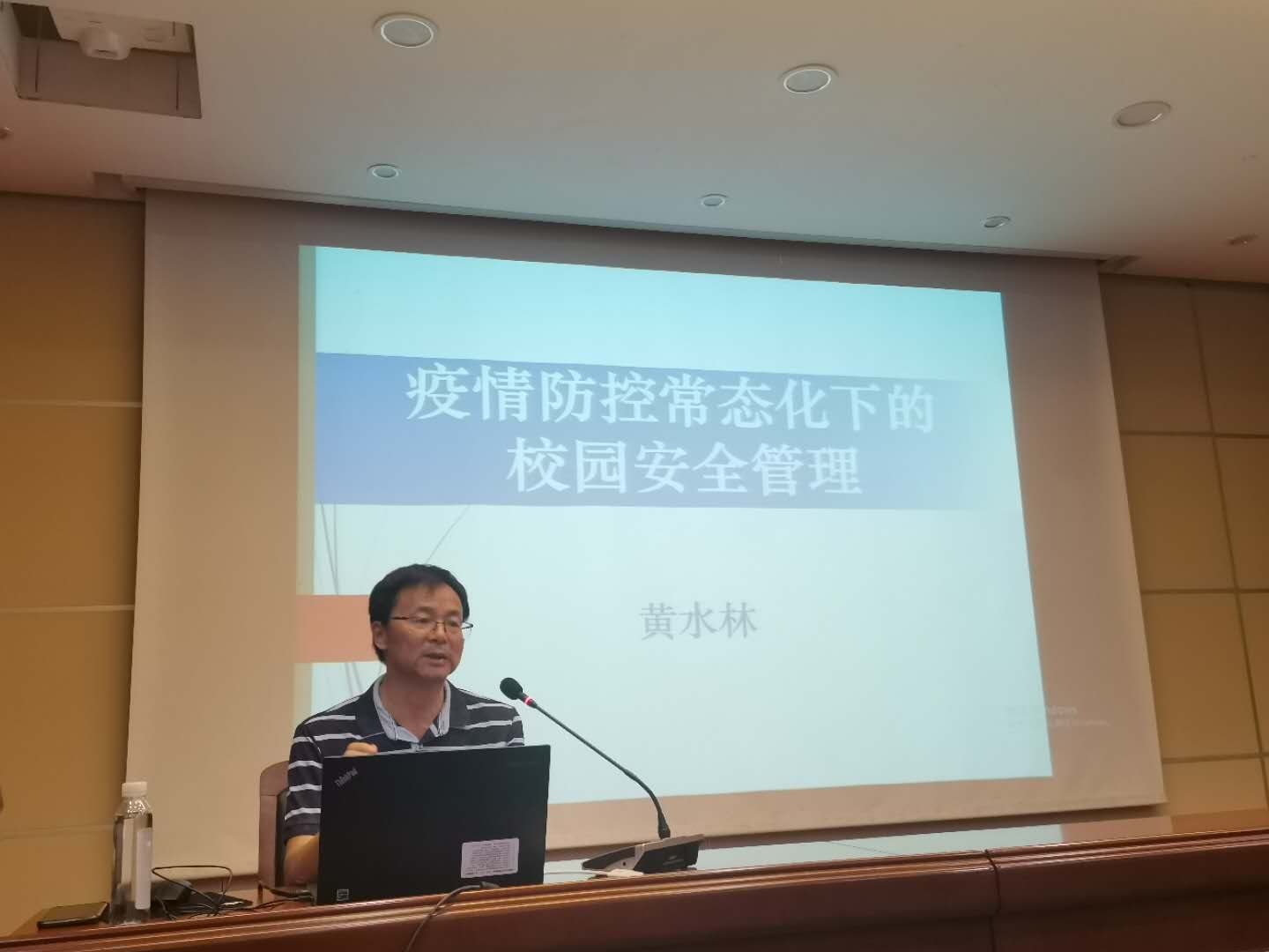 表彰会后,黄水林处长以《疫情常态下的校园防控管理》为题,以近期其他高校的突发事件为例,对全体保安员开展专题培训,规范校园安全管理、狠抓安保措施落实、提升安全力量的处突能力。