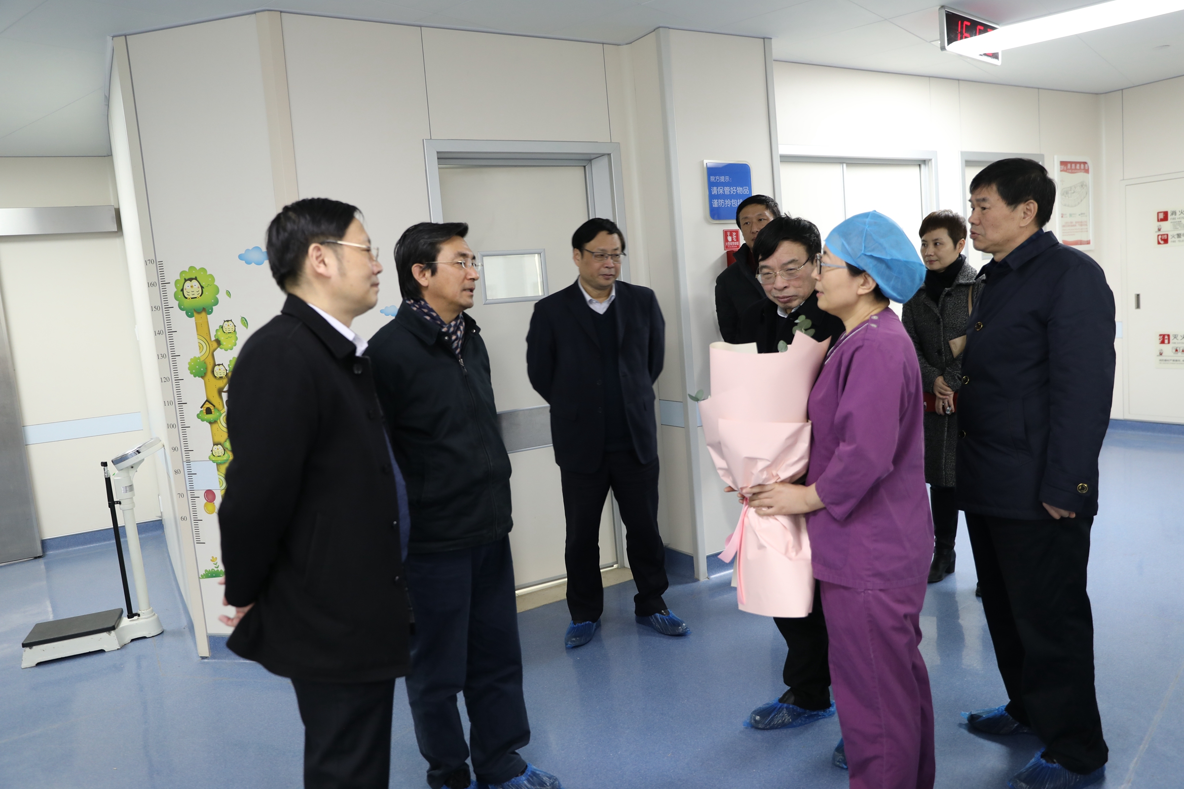在苏大附属儿童医院,校领导向忙碌在一线的医务人员送上了鲜花与新春祝福,并询问了医院近期的工作情况以及工作安排,希望医院合理做好春节期间的工作安排,确保节日期间医院各项工作安全、稳定、有序进行,让病人在节日期间看病有保障,也要让医护人员过上愉快祥和的新年。他同时希望儿童医院充分发挥医疗和科研优势,凝练血液学科特色,打造全国有影响力的专科门诊。
